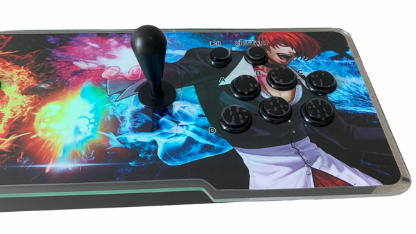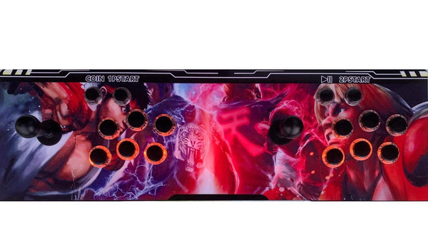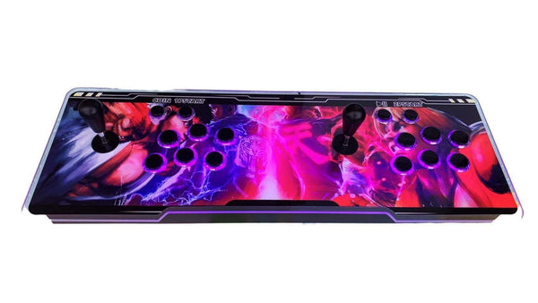Consola pandora box retroiluminada dupla edição especial Street Fighter com sistema de som integrado, jogos retro e jogos 3D, leds que mudam de cor, joysticks ovais estilo vintage e Wi-Fi.